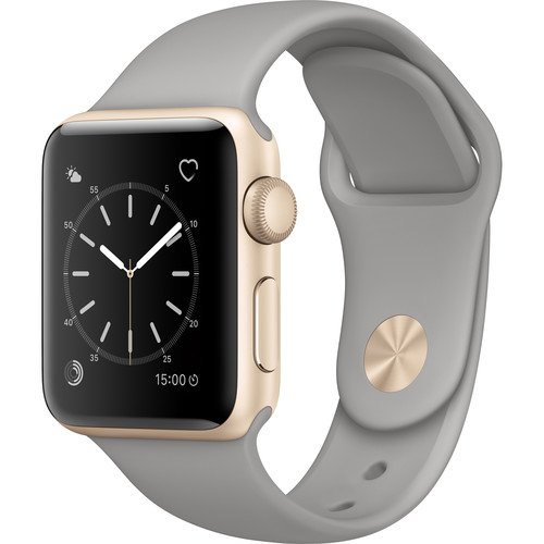 -. Title : Apple - Apple Watch Series 2 38mm Gold Aluminum Case Concrete Sport Band - Gold Aluminum