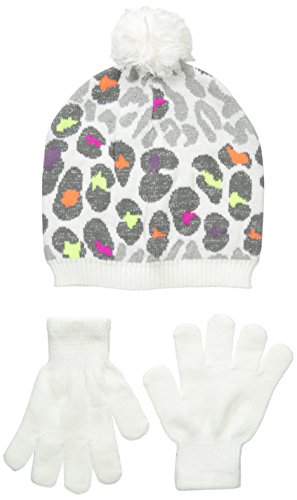 Nolan Gloves Big Girls' Two-Piece Rachel Pop Color Leopard Beanie and Gloves Set