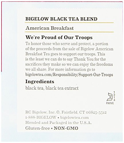 Feature : All-Natural / 50% More Caffeine than your Average Cup of Black Tea / A Portion of the Proceeds Goes Directly to Support American Troops / A Distinct and Smooth Black Tea Flavor Hand-Crafted Carefully by the Bigelow Family / Non-GMO