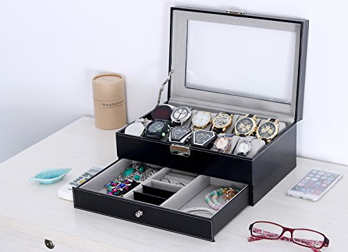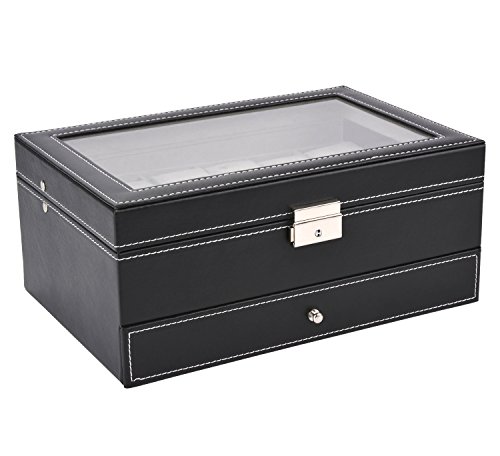 - Watch jewelry box with real glass lid keeps your watches from dust, and offers you an open view of the displayed watches