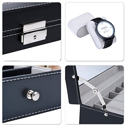 - Watch box made of quality black faux leather and soft gray velvet, this jewelry box is super excellent to protect your beloved jewelry,watch,ring from scratch and damage.It is the best gift for father,mother,family,friends or any other special person in your life as special gifts or birthday gifts,and a great wedding gift for bride and groom,graduation gifts for him or her,and so on.