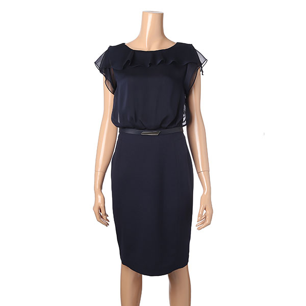 어깨에서 네크라인으로 이어지는 러플 디테일이 돋보이는 쉬폰 원피스입니다.