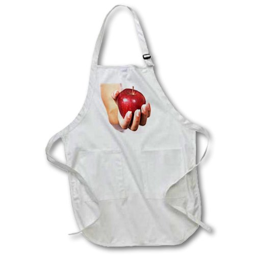 3dRose apr_29108_4 Red Apple-Full Length Apron with Pockets, 22 by 30-Inch, Black