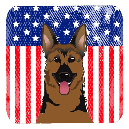 Caroline's Treasures BB2141FC American Flag And German Shepherd Foam Coaster (Set of 4), 3.5", Multicolor