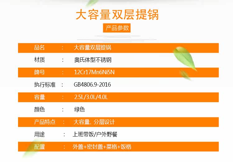 学生多层便当盒 不锈钢保温提锅 大容量双层保温饭盒