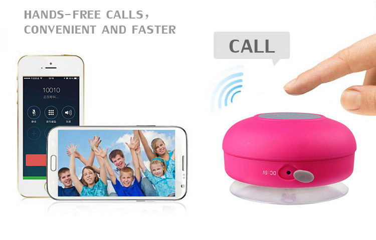 Shower Waterproof Wireless Bluetooth Speaker Portable Suction Cup Hands-free In-car Built-in Microphone for iPhone Samsung Mini 3.0 Silicon Handfree Smartphone Water Proof Outdoor Hand Voice Box PT73