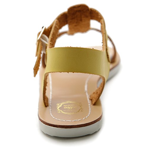 Ollio Women's Shoe Strap Side Buckle Slingback Multi Color Flat Sandal
