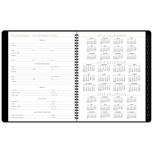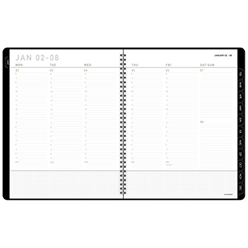 -. Feature : Contemporary weekly / monthly appointment book has a unique cover and modern design. Planner runs 12 months, January - December. / Two page weekly spreads list half-hourly appointment times from 8:00 a.m. and 5:30 p.m. Monday - Friday. Weekends are untimed. / Two page monthly spreads are tabbed for quick page turning. Daily blocks are unruled.