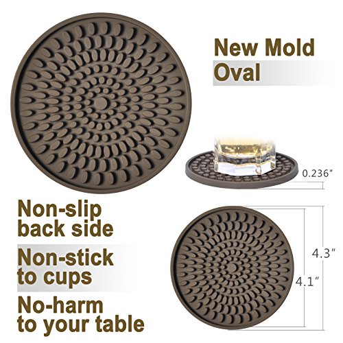 √NEW MOLD & NEW DESIGN: The Silicone drink coasters have 2 shapes,Heart Shape or Oval Flower Shape a pack for your choice.Both are Diameter 4.3 inches coasters can fit any large & small mug, cup or bottle.