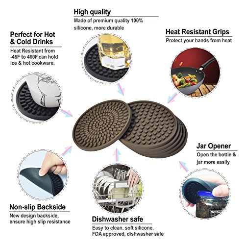 √MULTIPURPOSE COASTER:The coffee coasters be used as home decoration, spoon rest, barware set, bartender supplies or Table pad, Jar Opener, Heat Resistant Grips. Other wonderful idea that you can think of is also Okay. You can enjoy funny times with your family or friends at the house, indoor or outdoor; anywhere from the kitchen, library, office, pub, beach or even in the nature.