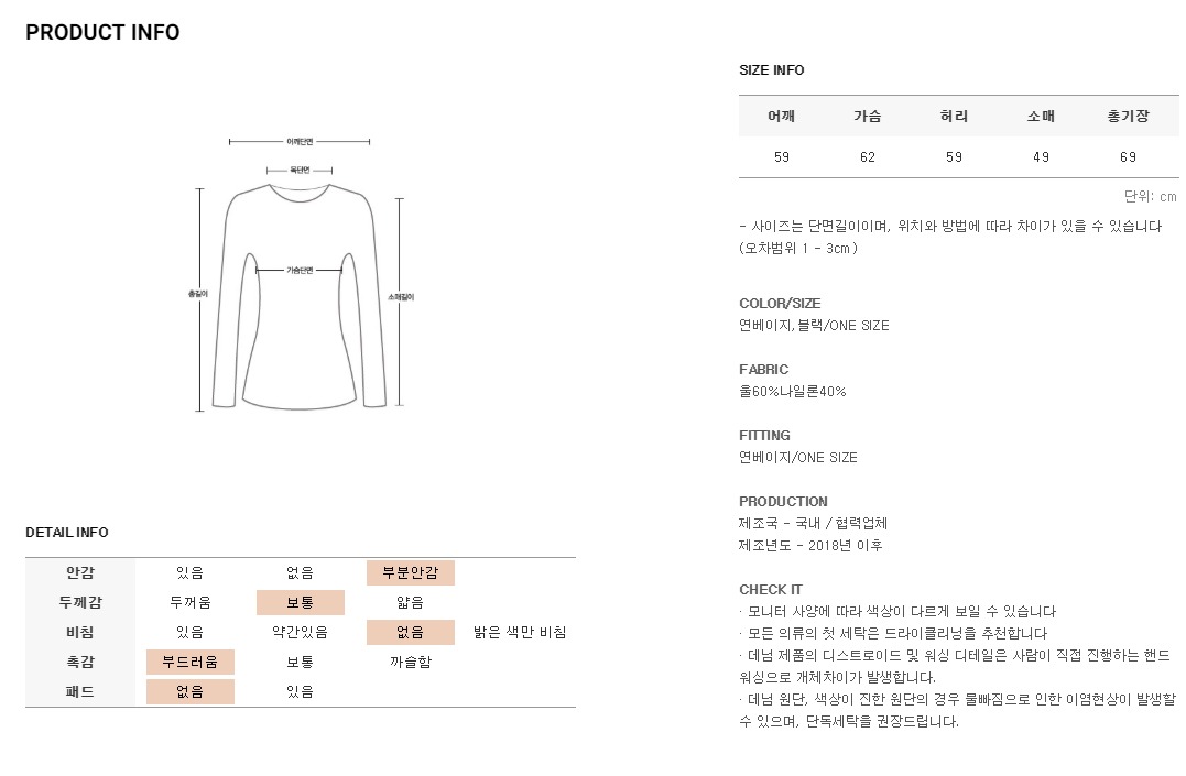 *모든 의류의 첫세탁은 드라이크리닝을 권장해드립니다*