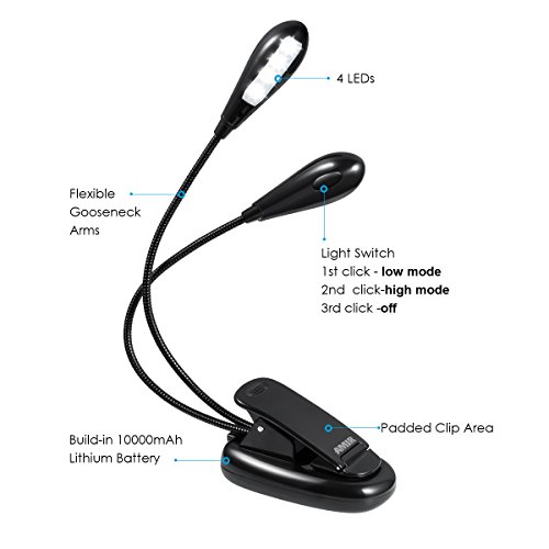 - 【5 LEVELS BRIGHTNESS】AMIR book light consists of 8 SMD LED bulbs, 5 brightness modes. 1 switch button behinds each head. 1st click low level, 2nd click high level, 3rd click off. Bright enough for reading at night and can easily light up 2 pages of book, notebook & anything else you'd like lit up.