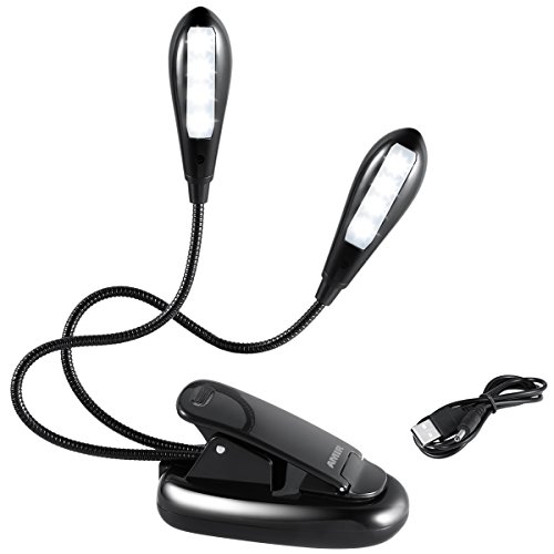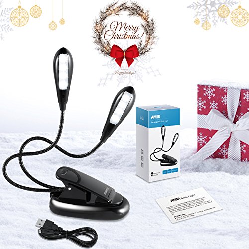 AMIR Clip on Book Light, 8 LED Music Stand Light with 2 Arms, Rechargeable Flexible Reading Light, Dual Head Travel Clip Light, Reading on Bed, Eye-Friendly with USB Cable for Readers, Kids, Children