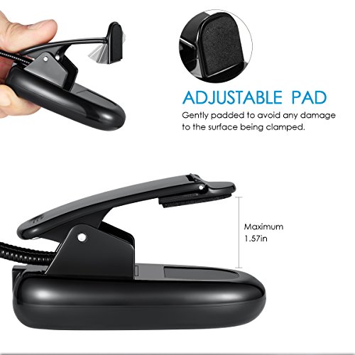- 【MULTIPLE USES】Designed with an extra sturdy padded clip, the maximum wide for clip is 1.57 inch. It will serve you well at night for multiple uses, such as reading books, clip on headboard, shelves, cupboards, computers, laptops, desktops, pianos, music stands, etc. We provide 100% Money Back and ONE YEAR Guarantee. Please feel free to try it!