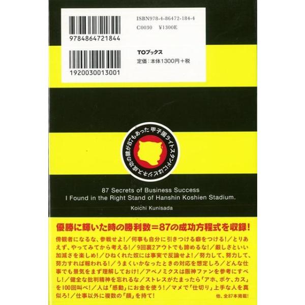 【商品基本情報】 商品名称:甲子園ライトスタンドにはビジネス成功の鍵が87もあった 著者/出版社:國定 浩一/國定 浩一 初版発行日:2013/08/31 サイズ:四六判 ページ数:223 ISBN/JAN:9784864721844/4528189549784