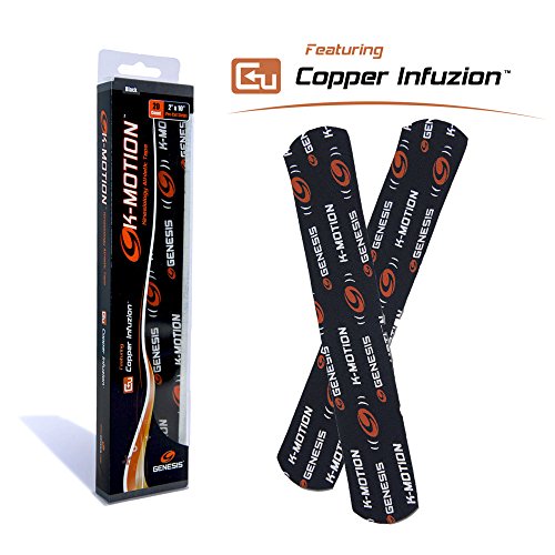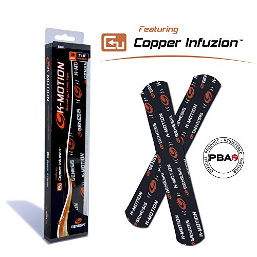 Studio : Genesis Bowling Publisher : Genesis Bowling Binding : Misc. Product Description Kinesiology Pre-Cut Tape with Copper Infuzion K-Motion with Copper Infuzion is an innovative Kinesiology tape solution for treating and preventing common repetitive bowling injuries such as wrist, forearm, elbow, shoulder, knee pain and more. K-Motion is the first tape of its kind with copper infused into a highly elastic synthetic / cotton hybrid material, and has proven highly effective for bowling’s repetitive motion. Applied correctly, it provides pain relief, increased support and stability for injured or weakened muscles, delays fatigue and can ease joint soreness without sacrificing freedom of movement or comfort. K-Motion with Copper Infuzion is very easy to apply, is anti-microbial, and can be worn for 3-5 days at a time, providing days of relief.Relieve Pain, Reduce Fatigue, Improve Performance, Cause a K-Motion For all common injuries and more... Wrist / Fingers,Carpal Tunnel,Forearm,Elbow,Bicep/Tricep,Shoulder/Rotator Cuff,Neck Strain,Lower Back,Quad/Thigh,Knee Pain/Stability,Hamstring/Calf Strain,Ankle Sprain/Stability,Achilles Tendonitisand More... Available in Rolls of 20 Pre-Cut Strips or Uncut. This product is the pre-cut roll. Sizes: Pre-Cut Strips - 2 inches x 10 inches | Uncut Roll - 2 inches x 16.6 inches 0