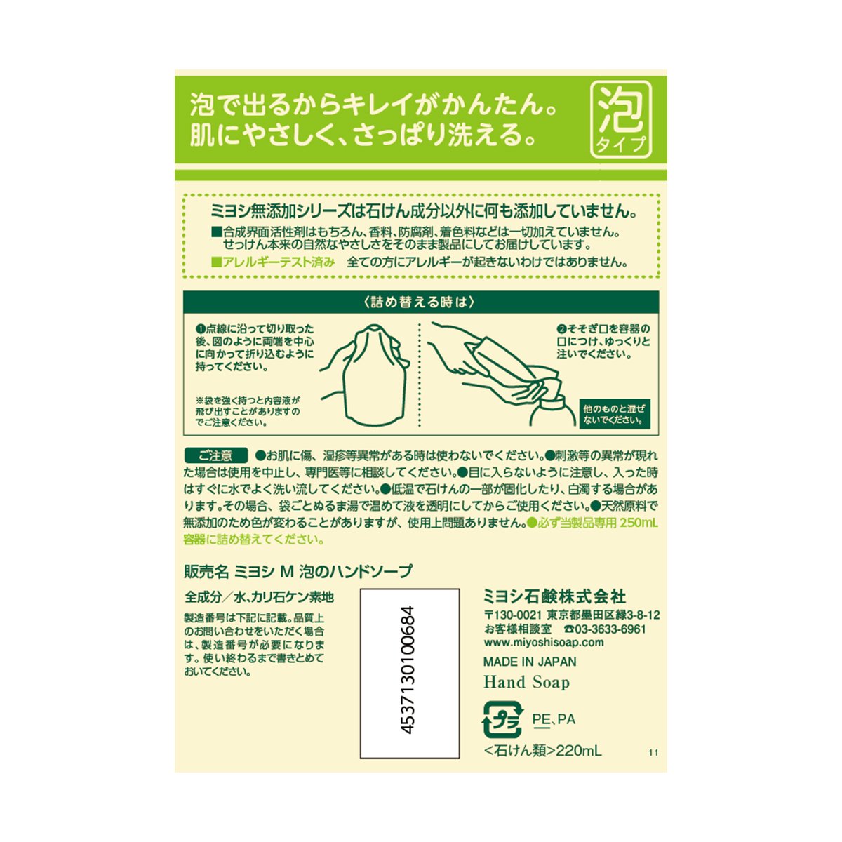 Hand soap without addition of fragrance, coloring agent, preservative.