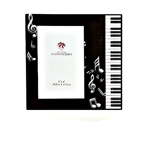 BLACK & WHITE Beveled Glass MUSIC Theme Picture Frame - PIANO KEYBOARD - NOTES - G Clef RECITAL Photo Holder- GIFT - KEEPSAKE Boxed