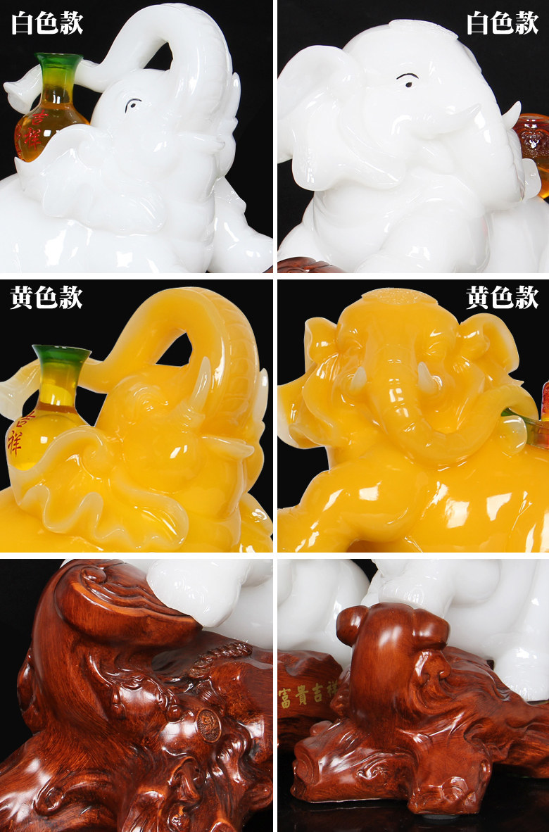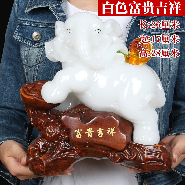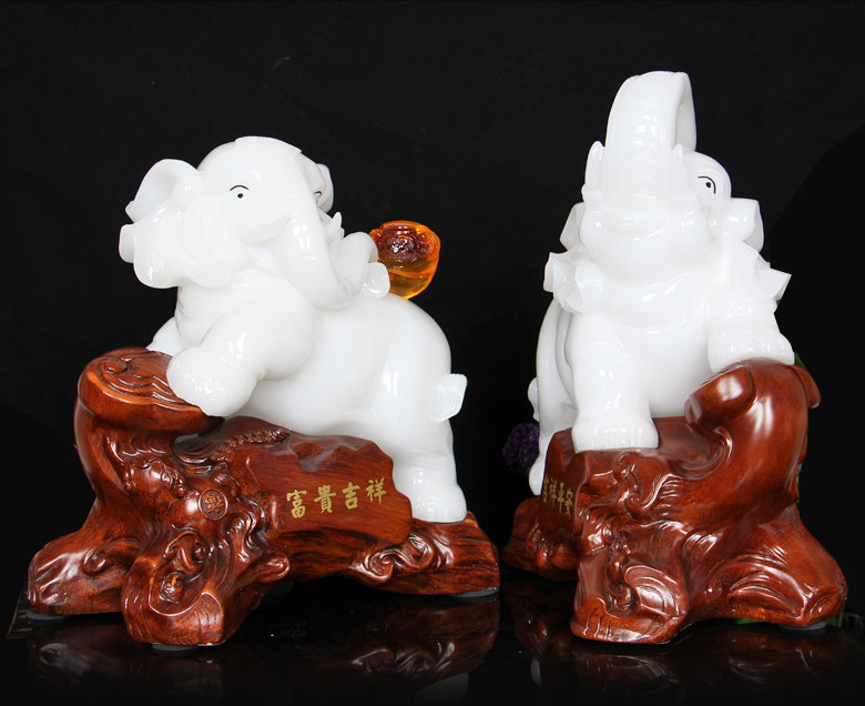 大象摆件大号一对白玉色工艺礼品 简约开业礼品办公室客厅装饰品