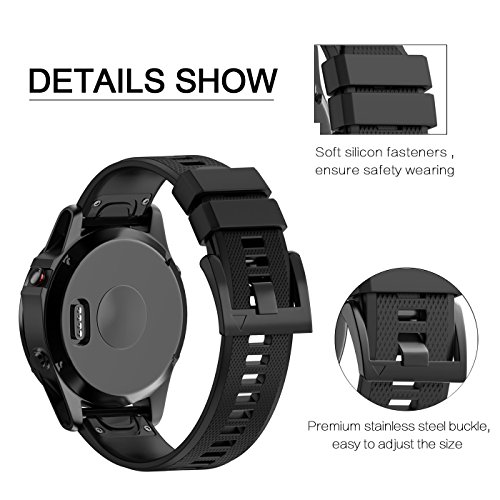 Fashioneey For Garmin Fenix 5X Band,Soft Silicone Wristband Replacement Strap with Quick Release Connectors for Garmin Fenix 5X / Fenix 3 / Fenix 3 HR GPS Watch