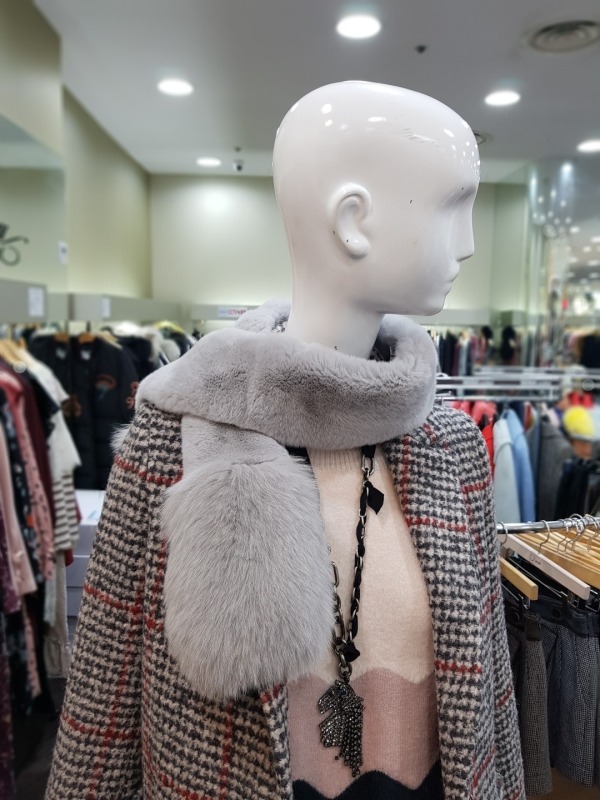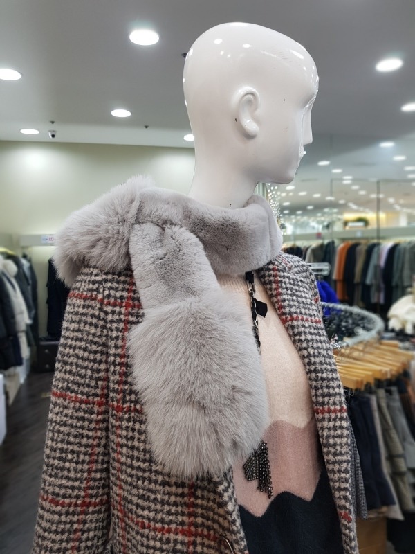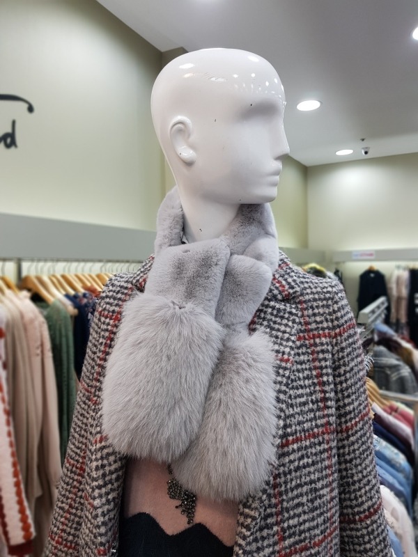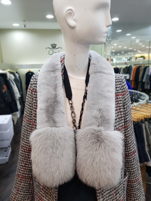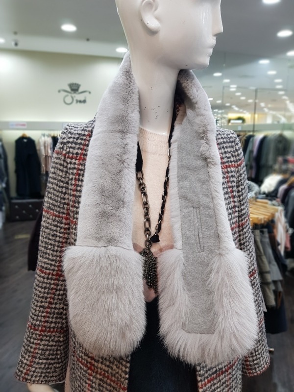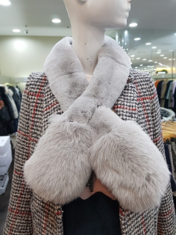 총장122cm 의 모피 머플러로 긴부분은 토끼, 밑에 부분은 여우로 구성 되어 있습니다. 구멍이 있어 착용시 흘러 내리지 않게 착용이 가능하며, 다양한 연출이 가능하여 코디에 따라 이쁘고 따뜻하게 착용이 가능합니다.