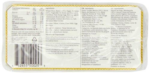 原材料:小麦粉、バター、砂糖、レーズン、植物油、コーンフラワー、卵、食塩、脱脂粉乳、膨張剤、(原材料の一部に大豆を含む)