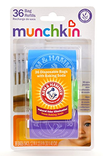 Stinky diapers are no match for the odor eliminating power of the Arm and Hammer Bags. This refill pack includes 12 bags in each refill unit; 36 bags total. The bags are lavender scented and infused with baking soda for safe, effective, and natural odor elimination. The bags are durable and easy to separate and compatible with all Munchkin dispensers it's the little things.
