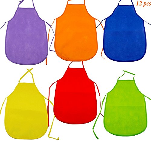 Assorted color kids aprons protect children in the kitchen or during art projects, great for school, arts and crafts and more! Ages 3+, 13" x 18" with 14" long ties. Assorted colors. One size fits most.