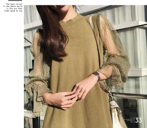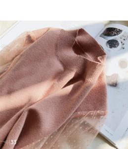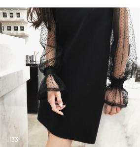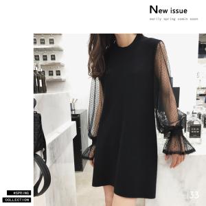ニットワンピース ミニワンピース ドットチュール フレア袖 ボリューム袖 ミニ丈 膝上 ラウンドネック プチプラ