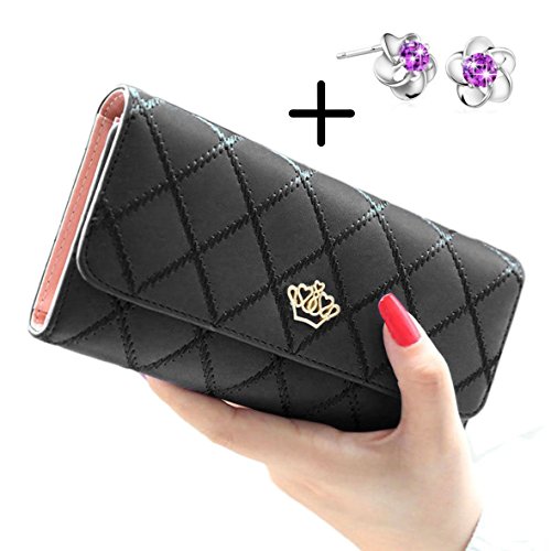 Tonsee Fashion Lady's Clutch Long Purse Leather Wallet (Black)