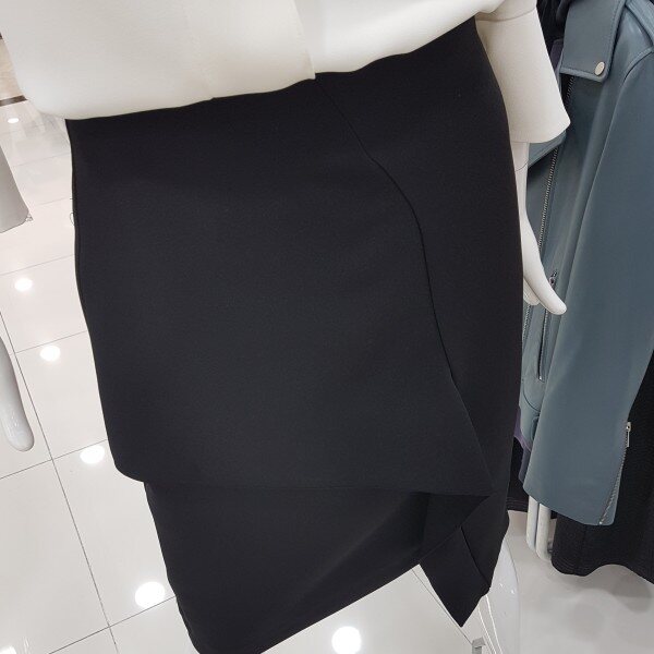 깔끔블랙에 언밸러플 스커트네용밑단언밸런스한 러플디테일에 ㅎㅎ날씬하고 여성스러운 아이랍니다신축성있어 착용감도 편하구요적당한두께감에 잡아주는핏이 이뻐용
