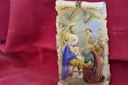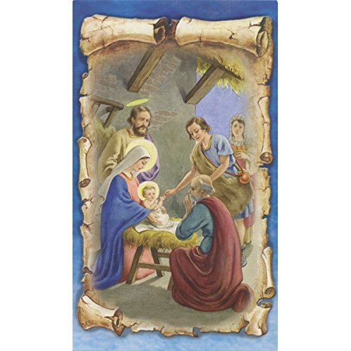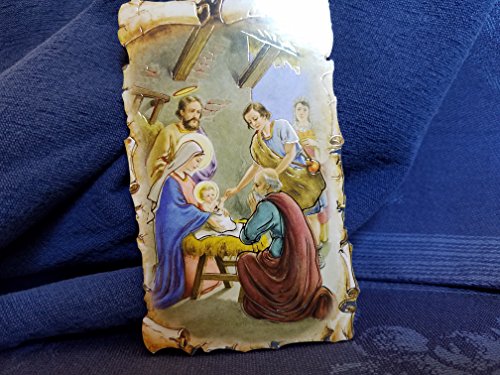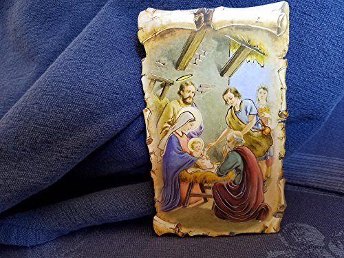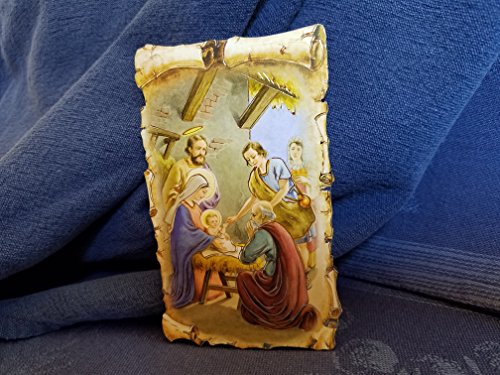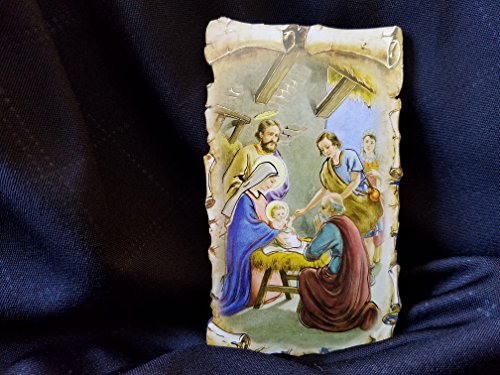 The Holy Family Nativity Scene with Gold Inlay Scroll Detail | Blessed Virgin Mary Madonna and Child Icon 4 1/2 Inch with Stand