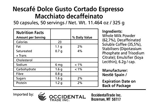 Pack of 50 Capsules of Nescafe Dolce Espresso Cortado Decafeinato, Decaffeinated - 50 Capsules