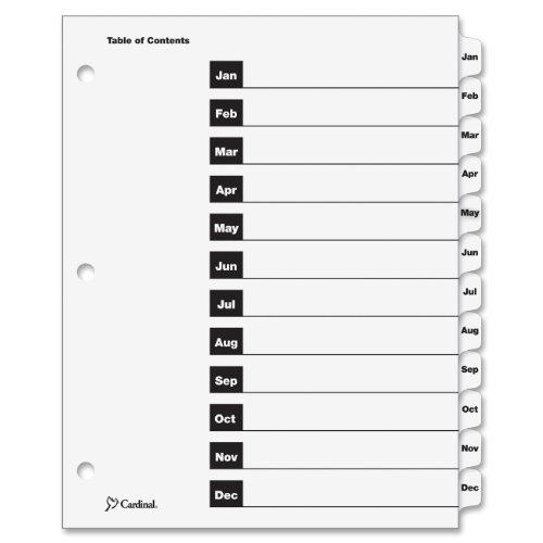 Cardinal OneStep Index System, 12-Tab, Monthly, White, 1 Set (60313)