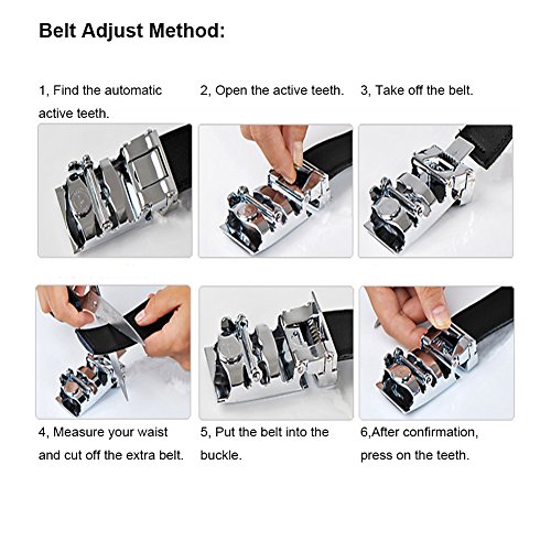 Binding : Apparel Product Description Winnerbe belts all adopts genuine leather for the strap. Alloy buckle matches with leather belt, making it is a good choice when you need a business belt or casual dress belt. Material: cow split leather strap Alloy buckle Belt buckle: Automatic buckle (Ratchet belt) Warm tips : Length Can Trim There may be some difference because of different dressing habits. If you are not sure about your size, You can choose a long belt and trim it to fit, just need a pair of scissors. If the belt is too long, please trim the belt as follows method: (1) Open the active teeth and take off the belt (Scissors or screwdriver) (2) Remove the belt strap (3) Measure your waist and cut off the extra belt (4) Put into the buckle and press on the teeth