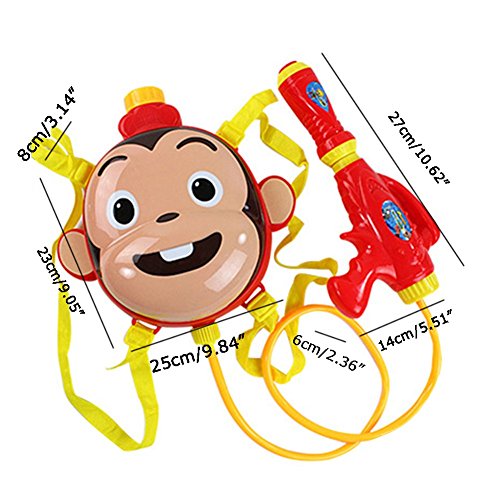Studio : Jutao Publisher : Jutao Binding : Toy Product Description Get ready to cool down from the heat this summer with this water blaster! This high pressure water system can shoot streams of water for up to 8-10meters to soak all your friends and family! The huge conpacity water backpack allows you to conveniently carry your water everywhere with you to soak everyone in your path! material: Plastic ABS >Backpack size:23cm x 25cm x 8cm, The water gun size Size: 27cm x 14cm x 6cm 0