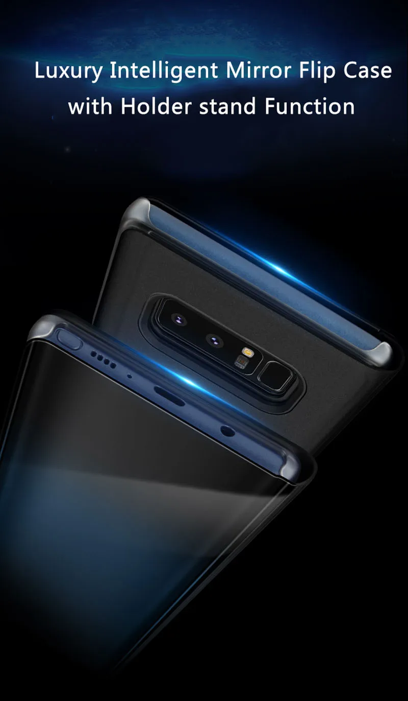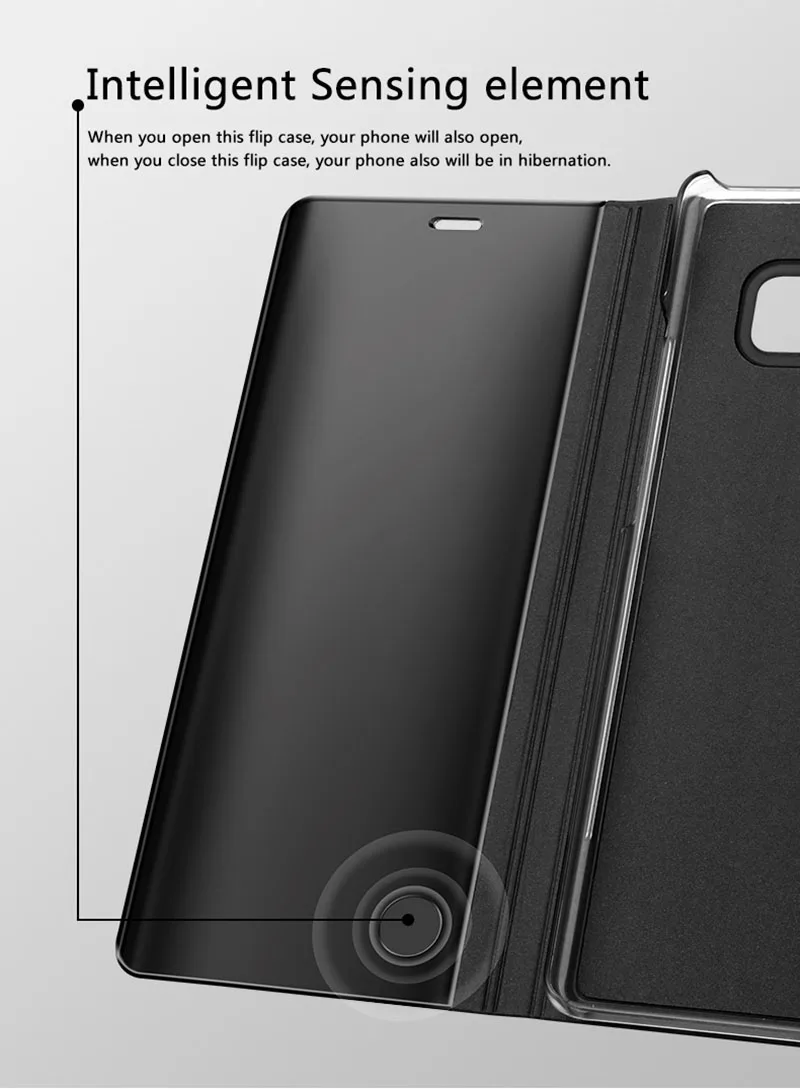 Features:Luxury Flip PU Leather Window View Clear Plastic Mirror Cover Fundas