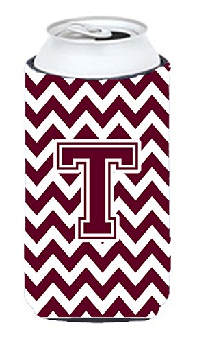 Letter T Chevron Maroon and White Tall Boy Beverage Insulator Hugger CJ1051-TTBC