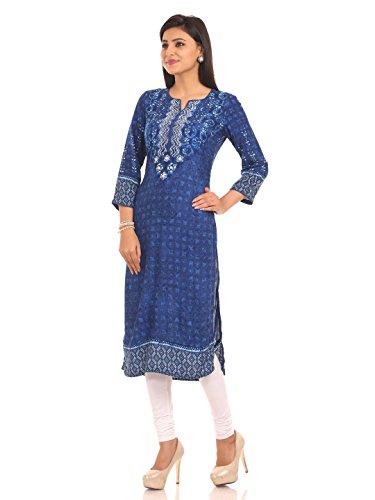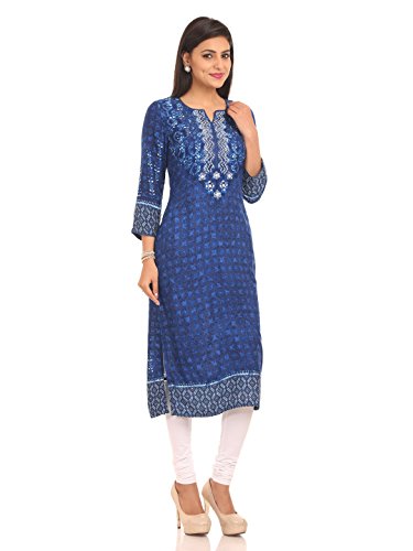 -. Title : BIBA Women's Straight Viscose Round Neck Printed Kurta