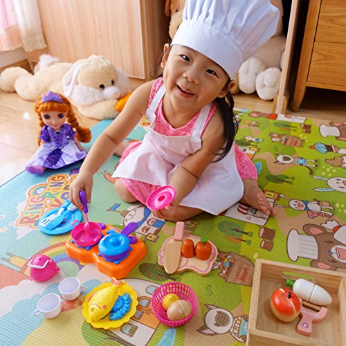 Studio : MULAN Inc Publisher : MULAN Inc Product Description Apron size: S: 1-3 years, 45cm long 33cm wide M: 3-8 years, 53cm long 46cm wide L: 9-14 years, 65cm long 48cm wide Chef hat Free size: from 15.7" (40cm) to 21" (53 cm) in circumference In our childhood almost every kids like to cooking,baking,painting or decorating,especially girls.So we designed specially for our little friends. The chef apron and hat both thicken and smooth Cotten/polester(35/65),Special complete process fabric Easy to decorate with marker, iron on or embroidery Easy to multiple washes or bleach. 0