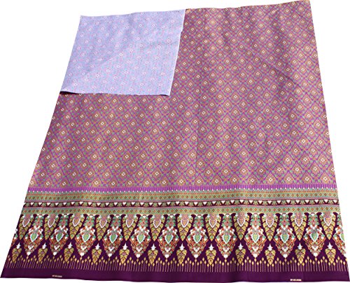 RaanPahMuang Thick Printed Batik Cotton Fabric in Thai Print 70x40 inches, Purple