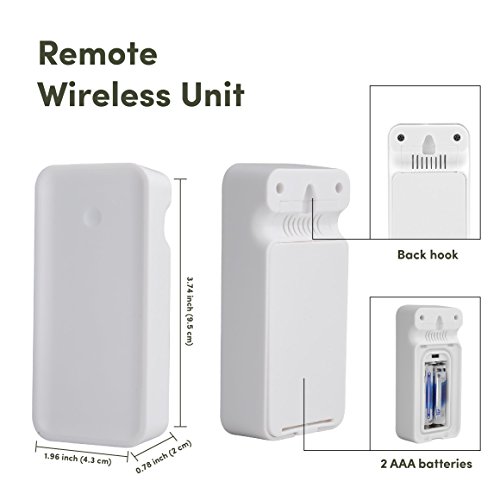 Remote wireless unit displays temperature and humidity of two separate locations