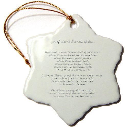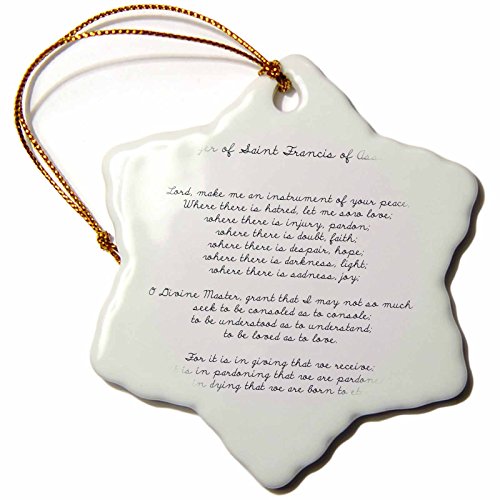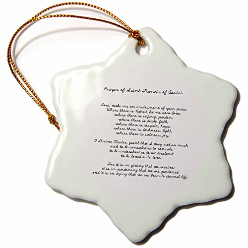 3dRose orn_110280_1 Prayer of St. Francis of Assisi Spirituality Religion Snowflake Porcelain Ornament, 3-Inch