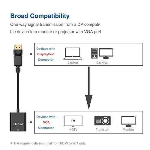 What You Receive: 2 x Moread DP to VGA adapter, 1 x Customer Service Card, our 12-month warranty, and supportive pre-sales and post-sales customer service