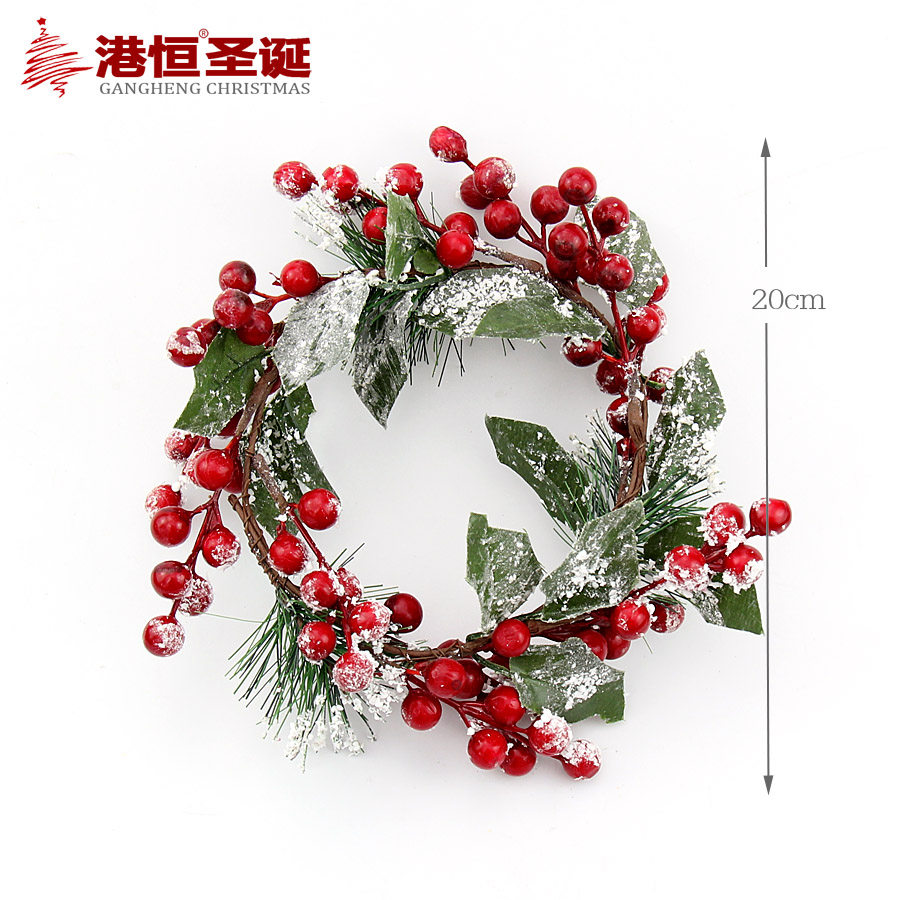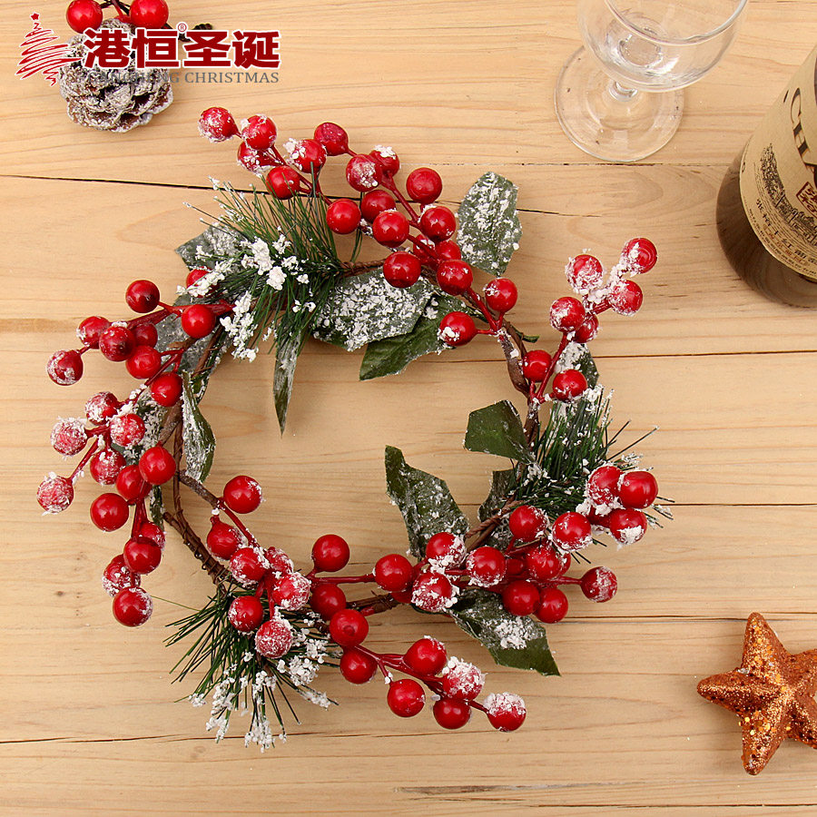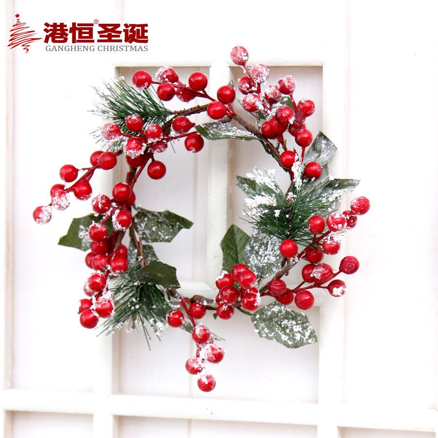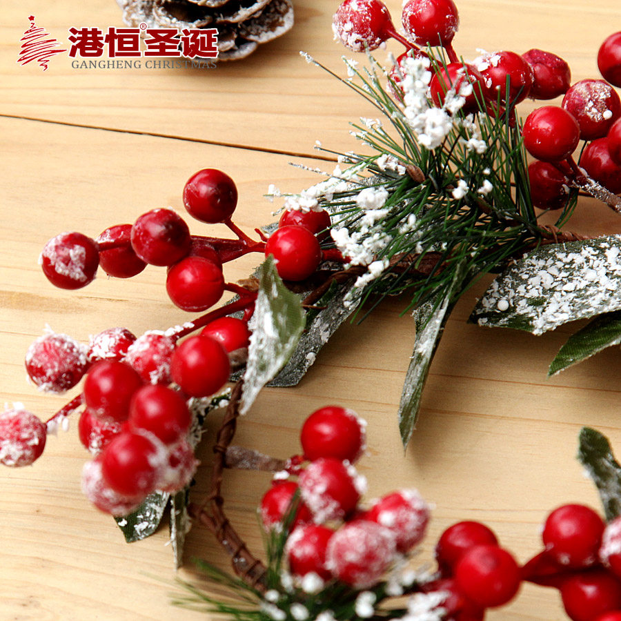 港恒圣诞节装饰品红果藤艺松针花环20cm粘白迷你装饰圣诞花环 50g