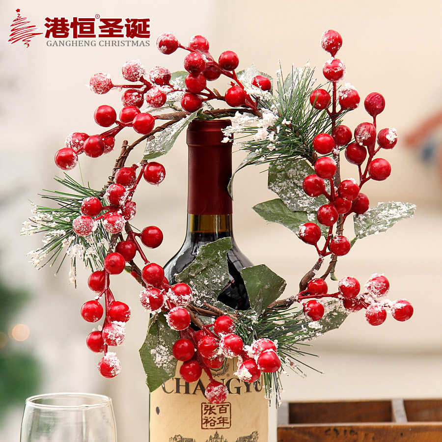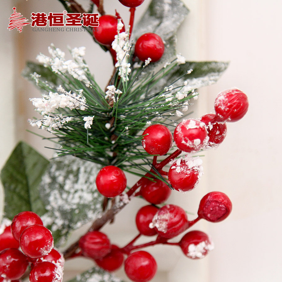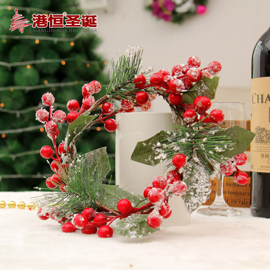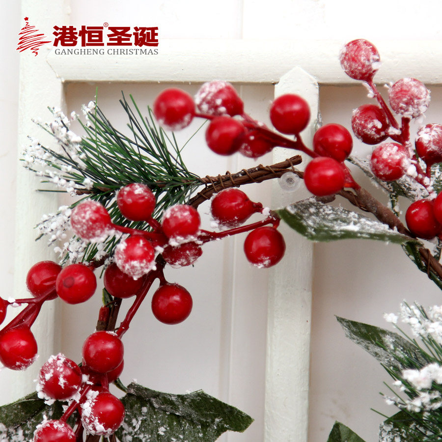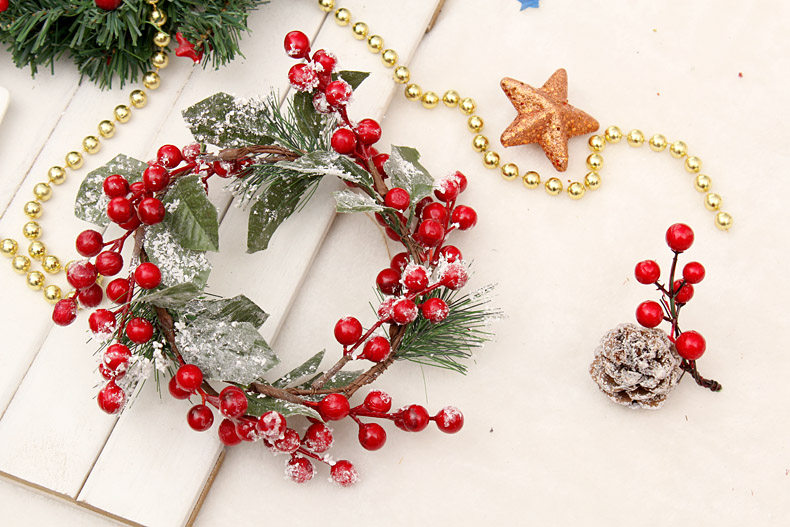 港恒圣诞节装饰品红果藤艺松针花环20cm粘白迷你装饰圣诞花环 50g
