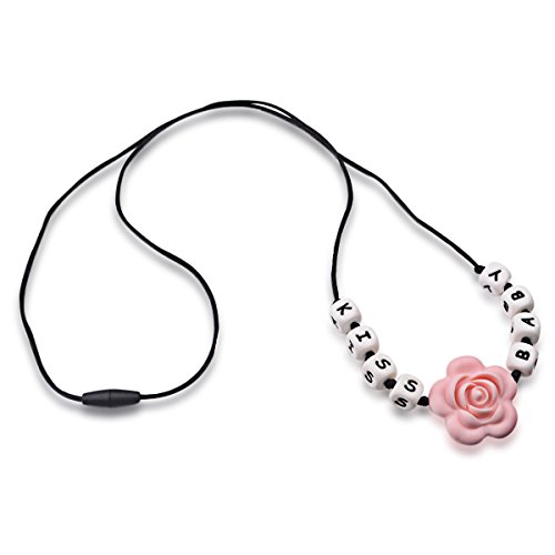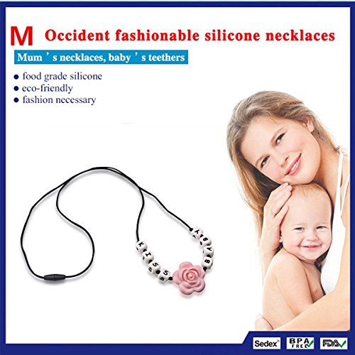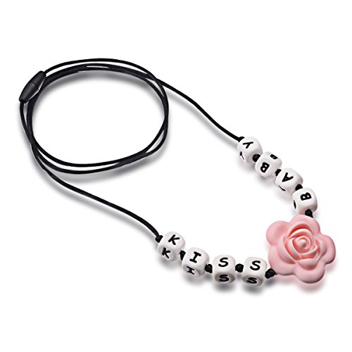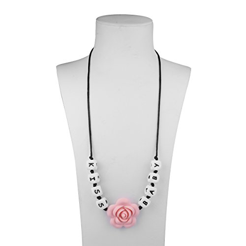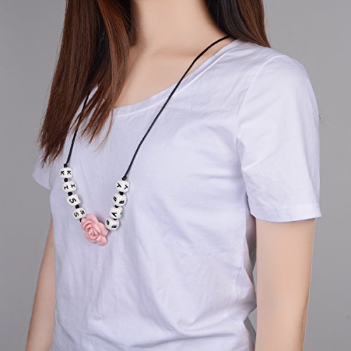 Teething Necklace for Mom to Wear Anywhere, Letter ChewBeads, Silicone Teething Neckless Charms, Baby Nursing Necklace,Baby Teether, Instant Teething Pain Relief. Stimulates Visual, Motor, Sensory Development