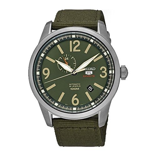 -. Binding : Watch -. Brand : Seiko Watches -. Color : green -. Department : mens -. EAN : 4954628202857 -. Feature : Self-winding automatic movement - an Eco-friendly choice for discerning customer. Powered by everyday movement of your arm / Automatic self-winding movement with analog display and hardlex crystal dial window / Date calendar water-resistant / Green cloth stainless steel case with green dial / Water resistant to 10 ATM / 100 meters / 330 feet : suitable for snorkeling as well as swimming but not diving -. Label : Seiko -. Manufacturer : Seiko -. Model : SSA299 -. MPN : SSA299K1 -. PackageQuantity : 1 -. PartNumber : SSA299K1 -. ProductGroup : Watch -. ProductTypeName : WATCH -. Publisher : Seiko -. Studio : Seiko -. Title : Seiko Mens 5 SPORTS Analog Sport Automatic Watch (Imported) SSA299K1