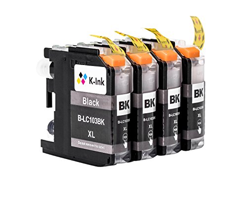 -. Binding : Electronics -. Brand : K-ble -. Color : Black -. EAN : 0726293046692 -. Feature : Premium Quality Compatible Ink Cartridges - Don't spend an arm and a leg for manufacture brand when you can get the same quality in a fraction of the cost / K-ble Ink cartridges are manufactured in an ISO 9001 certified facility / Compatible with Brother LC103 and LC101 cartridges. 100% Guaranteed to work with ALL New Brother printers that use LC103XL cartridges. / The Ink cartridges are engineered to produce superb results. All K-ble products covered by a 100% satisfaction guarantee and 1 year warranty. / Compatible With MFC-J4310DW MFC-J4410DW MFC-J4510DW MFC-J4610DW MFC-J4710DW MFC-J470DW MFC-J475DW MFC-J870DW MFC-J875DW DCP-J152W MFC-J245 MFC-J285DW MFC-J650DW MFC-J6920DW Printer -. Label : BROTHER -. Manufacturer : BROTHER -. MPN : KBLEBLC103BK4PK -. PartNumber : KBLEBLC103BK4PK -. ProductGroup : Office Product -. ProductTypeName : INK_OR_TONER -. Publisher : BROTHER -. Studio : BROTHER -. Title : K-Ink Brother LC103 LC 103XL LC101 Compatible Black Ink Cartridge Replacements (4 Black) -. UPC : 726293046692