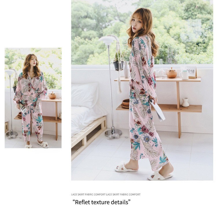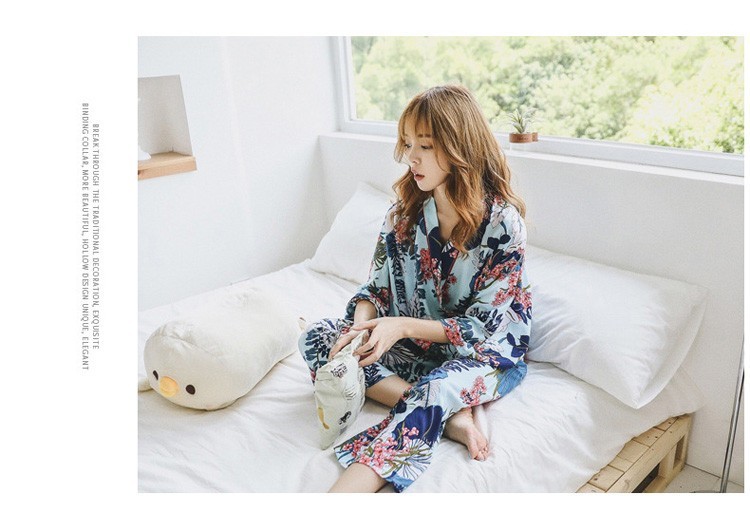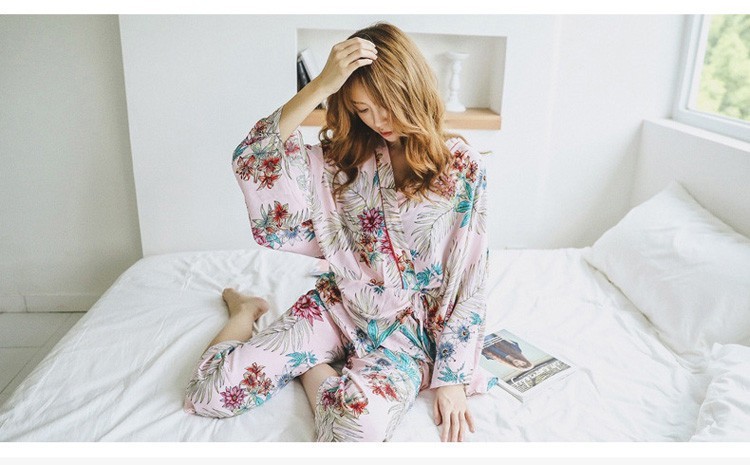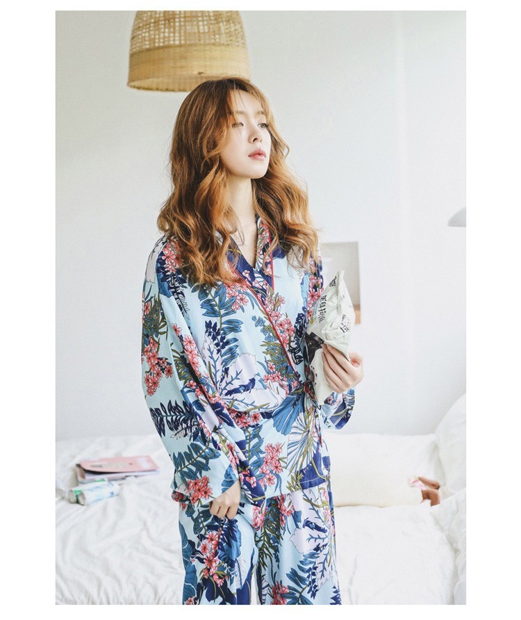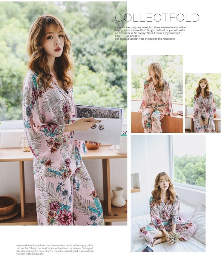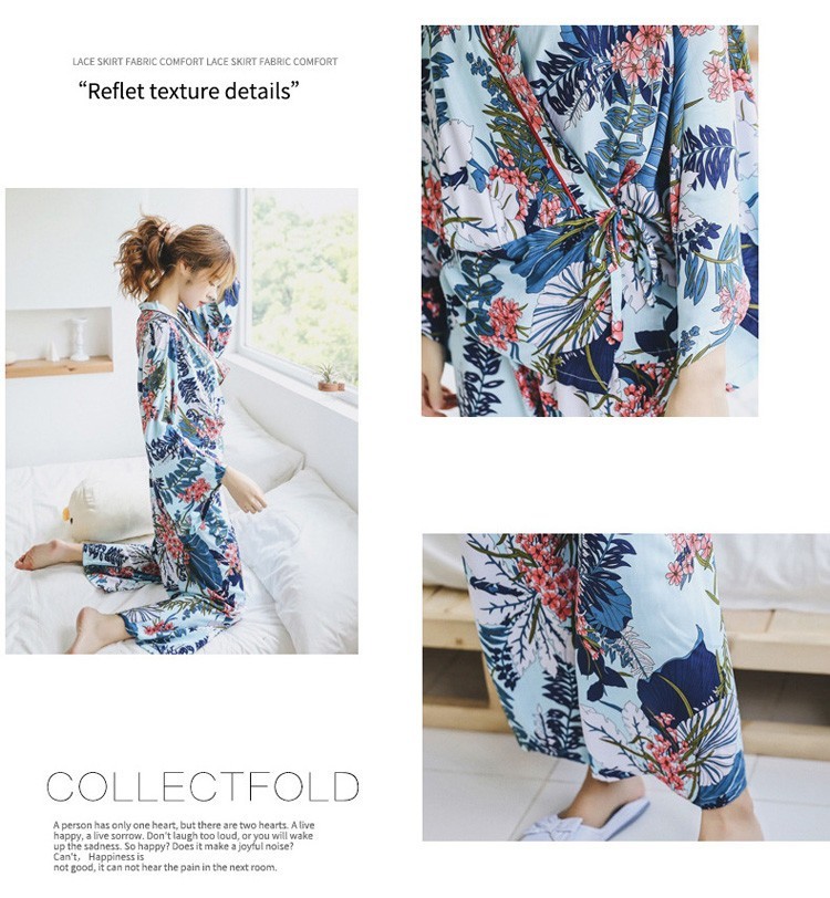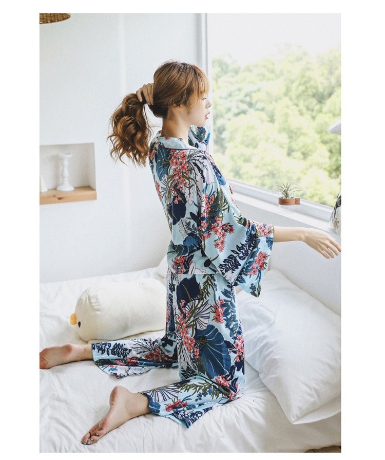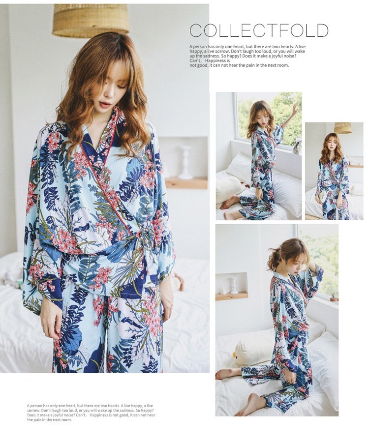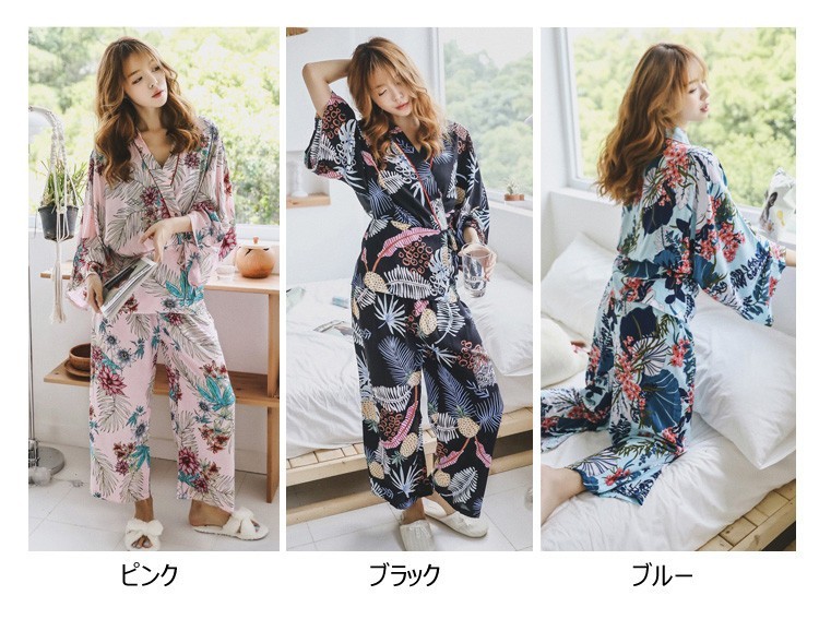 連携キーワード:2点パジャマ レディース 春秋 花柄パジャマ 上下セット Vネック 綿 長袖 和服風 ロングパンツ 女性 可愛い ルームウェア 部屋着 寝巻き 3色